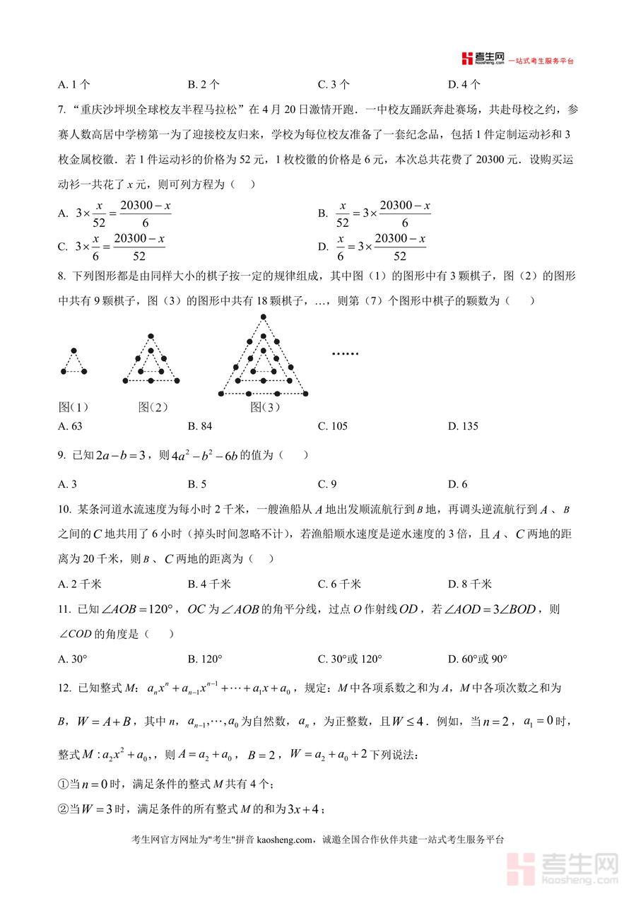 该试卷适用于重庆一中初2028届七年级学生、其他学校七年级同步学习数学学生,以及需要参考优质校命题资源的数学教师和家教辅导者。作为重庆一中官方发布消化作业原卷版,它具有权威性和针对性,是学生巩固阶段知识、提升应试能力不可或缺备考资料。长期来看,这份试卷还可作为七年级数学知识点复习参考素材,帮助学生构建系统知识框架,为后续数学学习奠定坚实基础。