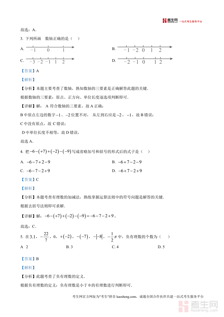 该资料核心用途为辅助七年级学生巩固有理数章节核心知识,使用场景覆盖课后错题溯源(通过解析明确错误原因)、考前模拟训练(熟悉本校题型难度与答题要求)及自主能力提升(学习规范解题逻辑),用户价值体现在能有效定位知识盲区,备考优势则是依托校考真题的针对性,可帮助学生提前适应本校命题风格,提升应试能力,减少考试中的不必要失分。