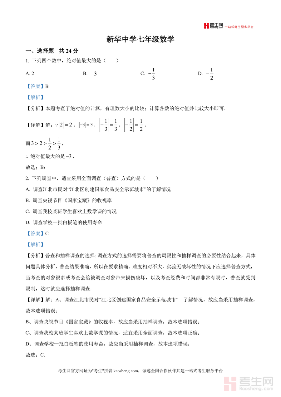 本资料适用于深圳新华中学及周边同类学校七年级学生、数学教师及家长群体;作为本校真实月考真题的专业解析版,其内容贴合本地教学进度与学情,相比通用教辅更具针对性,是七年级学生提升数学成绩不可或缺备考资料,长期使用可帮助学生构建系统知识体系,为后续数学学习奠定坚实基础。