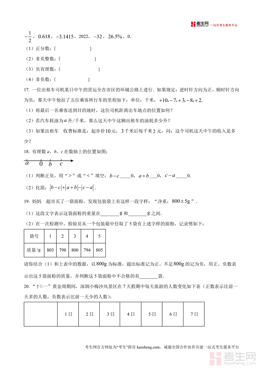 该资料核心用途为七年级学生期中备考的自测练习与知识点巩固,使用场景包括课堂同步训练、课后自主复习及考前模拟测试等。对于学生而言,通过完成该练习卷可快速检测自身对有理数相关知识的掌握程度并明确薄弱点;对于教师来说可作为课堂练习或单元测试素材;家长则能借助该资料辅助孩子进行针对性复习。其备考优势在于精准匹配深圳本地期中测试命题方向,帮助使用者提升应试能力并高效利用复习时间。