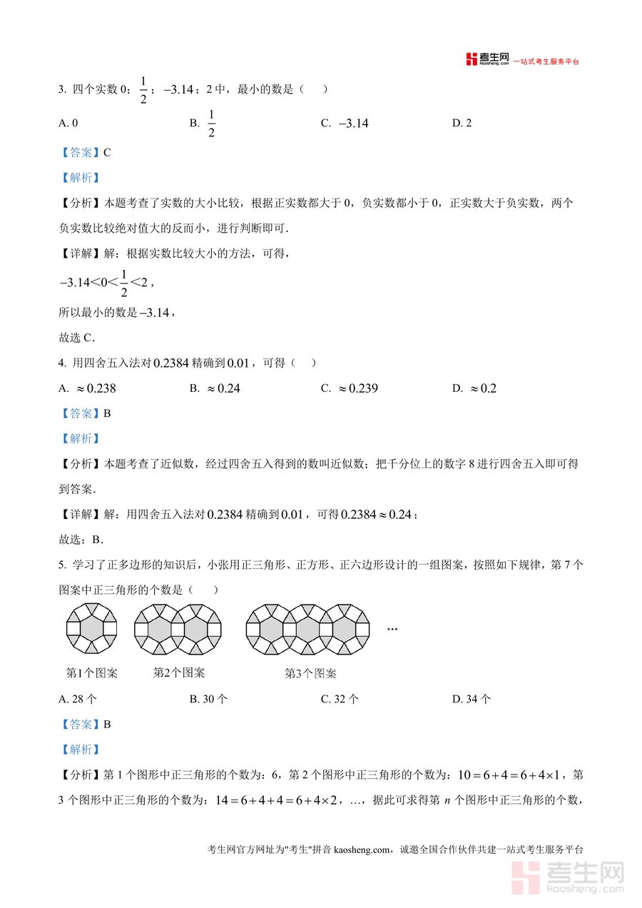 该资料核心用途为辅助学生开展真题演练与错题分析适用于日常复习巩固考前冲刺强化等场景用户价值体现在通过专业真题解析掌握深圳三校联考命题规律与题型特点备考优势显著能有效提升应试能力例如对规律题如正三角形图案计数和代数运算题等重点题型解析可强化学生解题思维与技巧助力快速突破学习难点