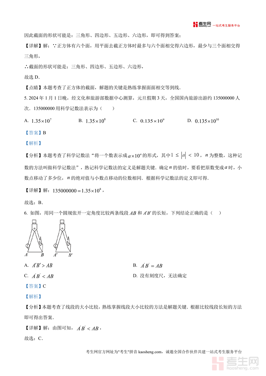 该资料核心用途在于辅助七年级学生进行期中备考,适用场景包括考前系统复习、日常错题整理及知识点查漏补缺。学生可通过完成真题熟悉该校期中数学考试题型结构与难度水平,借助详细解析梳理解题思路,明确考点要求;教师可利用其作为教学参考,针对性讲解高频考点与易错题型。相比普通练习资料,其依托该校真实考试内容,能更精准贴合学生学习进度与考试要求,有效提升应试能力与学科素养。