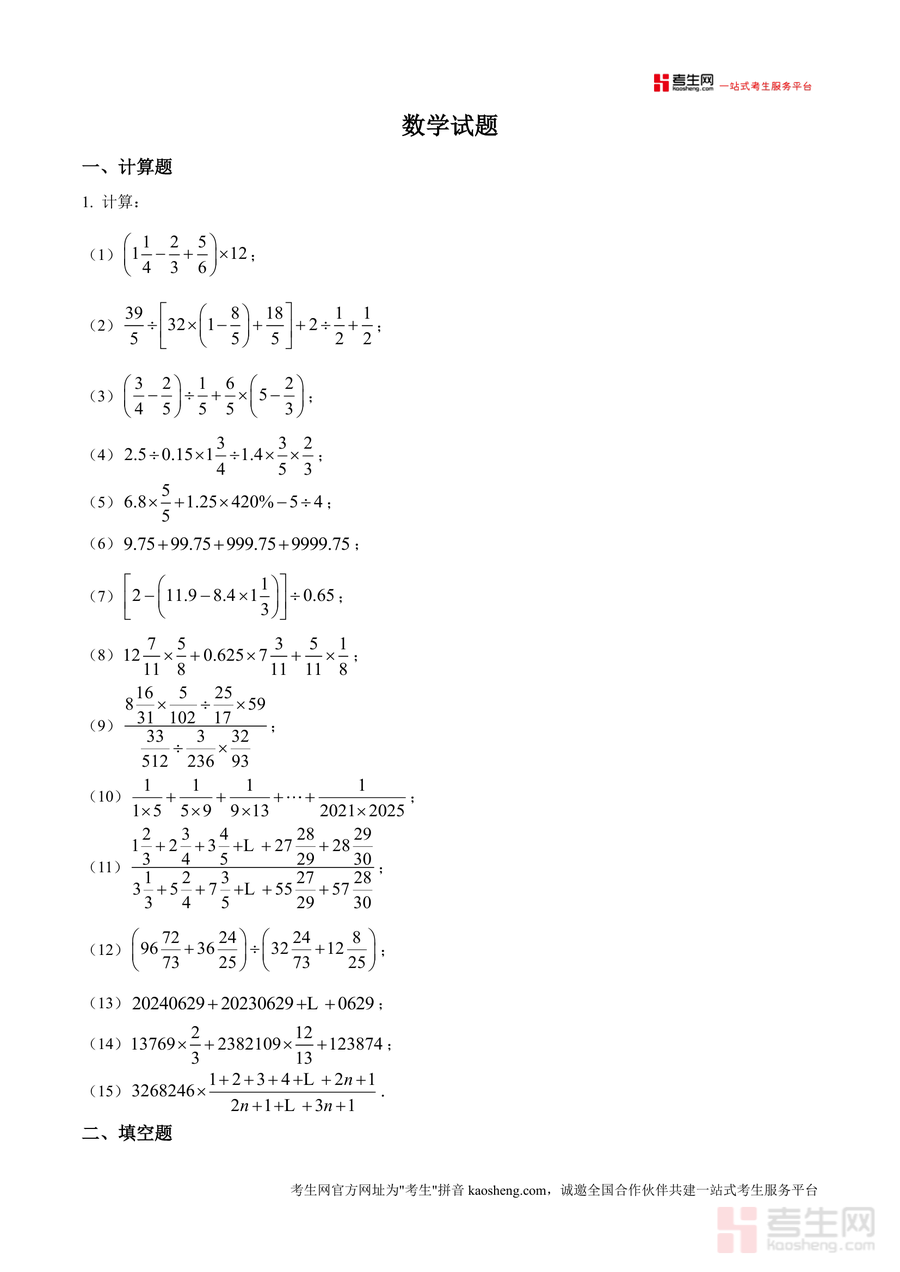 《精品解析:重庆市部分学校2025-2026学年七年级上学期新生入学考试数学试卷(原卷版).docx》是一份针对重庆市七年级新生入学考试设计的专业备考资料。该试卷涵盖计算题、填空题、解答题及综合拓展四大题型,内容覆盖代数运算、几何图形面积计算、抽屉原理应用、混合比例问题、立体图形体积与表面积等核心考点;作为原卷版资料,其题型设置与难度梯度贴合重庆本地部分优质学校入学考试命题趋势,能真实反映新生入学所需具备的数学能力水平,为备考提供精准参考。