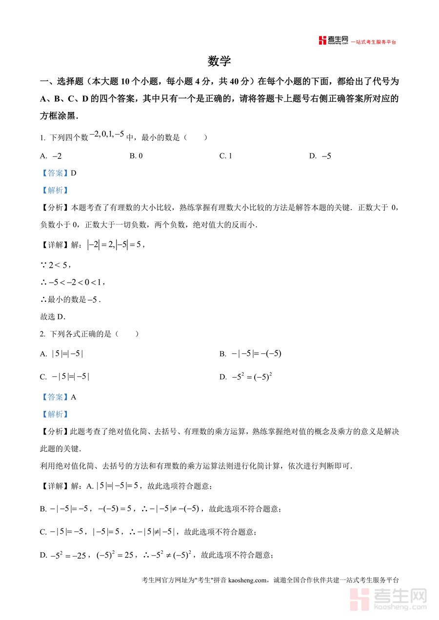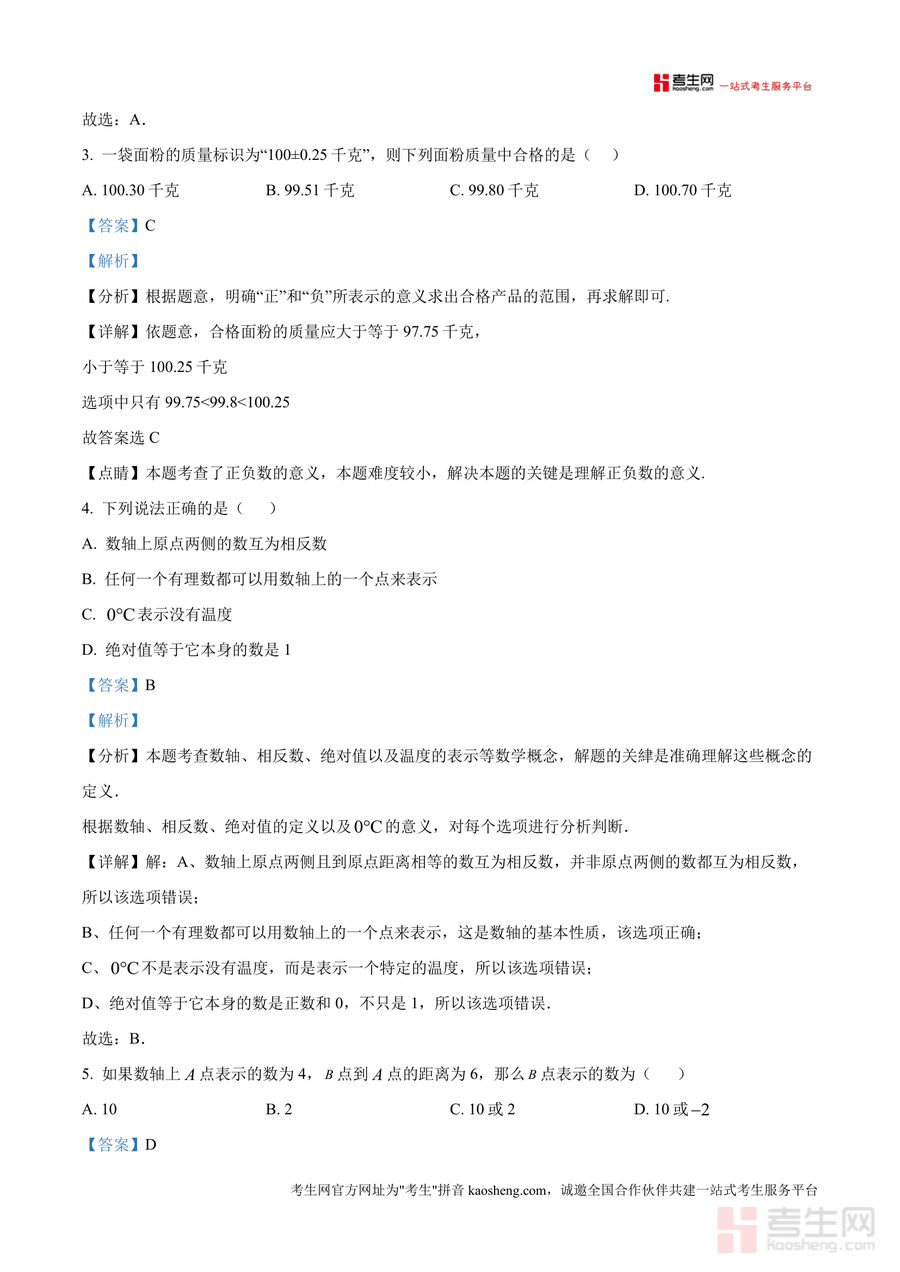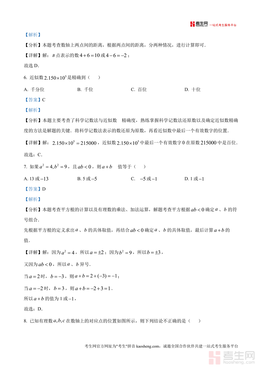 该资料核心用途在于帮助学生完成月考真题复盘:通过逐题解析明确知识盲区(如相反数与倒数性质应用不足)、掌握解题技巧(如利用绝对值几何意义简化运算);教师可将其作为课堂讲评参考,补充典型例题变式训练;备考阶段使用能有效提升应试能力,如通过真题训练熟悉题型分布与分值占比,针对性强化高频考点。此外,解析中融入答题规范要求(如解答题步骤书写标准),有助于学生养成良好答题习惯,减少非知识性失分。