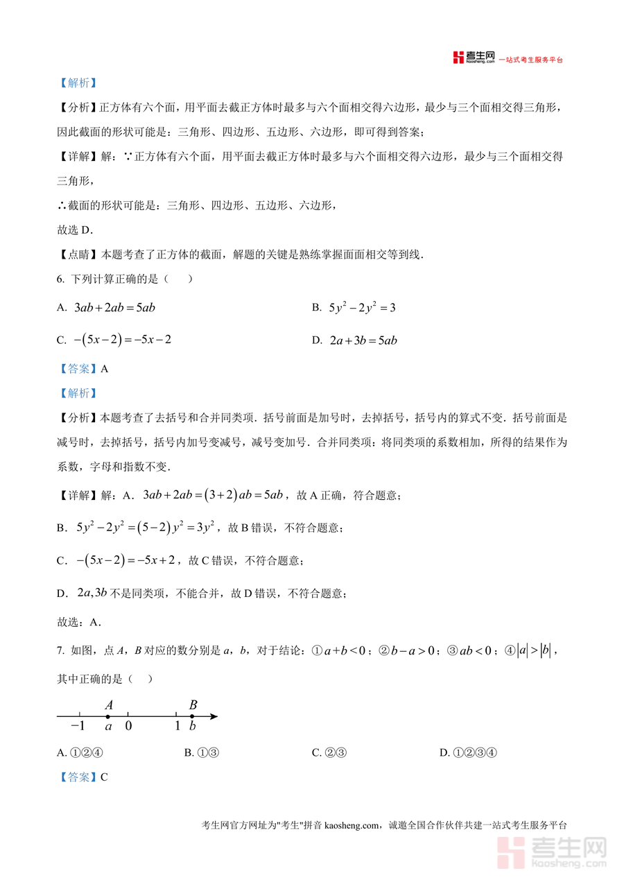 该资料核心用途为辅助七年级学生提升期中备考效率,适用场景包括考前系统刷题训练、日常知识点查漏补缺及错题归因分析;对学生而言,通过对照解析可快速定位知识薄弱点,学习规范答题步骤与技巧(如合并同类项法则应用),有效提升应试能力;对教师或家长,资料可作为教学或辅导参考,帮助精准把握校考命题方向与难度,针对性制定复习计划,相比普通练习题更具本地校考适配性与针对性。