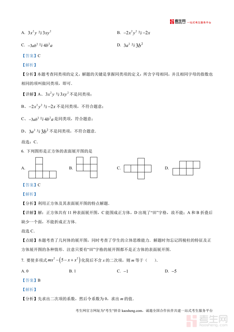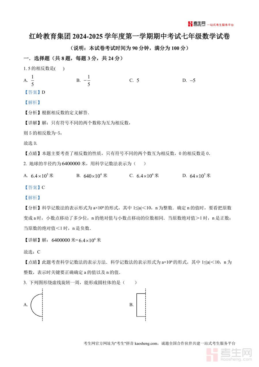 《精品解析:广东省深圳市福田区红岭教育集团2024-2025学年七年级上学期期中考试数学试卷(解析版)》是一份针对本地名校期中数学考试设计开发的高质量备考资料。该资料完整呈现了红岭教育集团七年级上学期期中考试数学试卷原题,并对每一道题目进行了逐题深度解析,覆盖有理数运算、代数式化简、立体图形展开等核心考点。其特色亮点在于结合深圳本地教学大纲要求设计题目,并通过详细思路引导帮助学生掌握解题方法——例如选择题中对科学记数法规则和同类项定义进行细致剖析,解答题部分提供分步计算过程及易错点标注,有效弥补学生知识漏洞。
