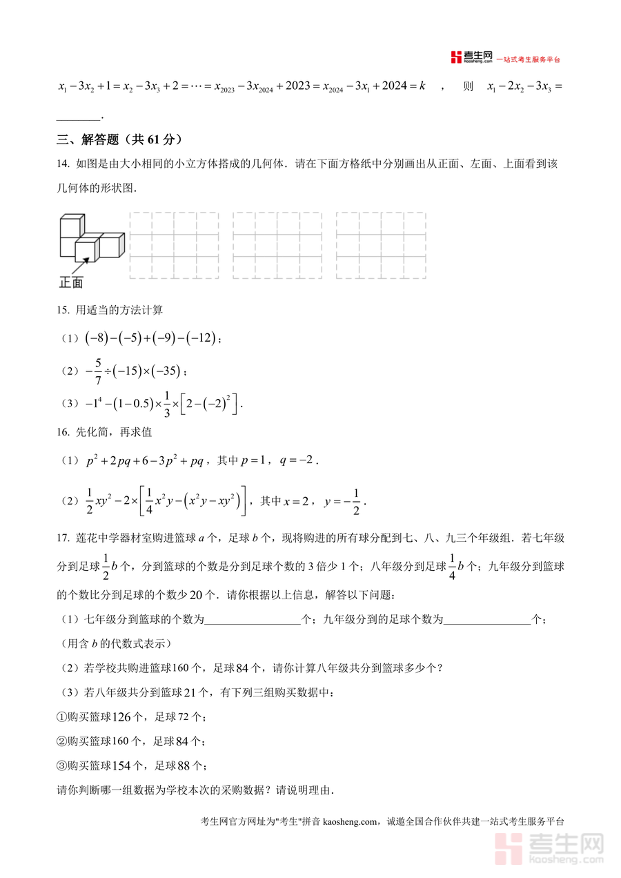 该资料核心用途在于助力学生考前模拟训练与知识点查漏补缺,使用场景包括学生自主限时练习(匹配90分钟考试时长)、教师课堂讲练结合、家长辅导孩子复习等。通过使用这份真题原卷,学生可熟悉考试流程与题型结构,提升应试能力;教师能精准把握该校命题方向,优化教学计划;家长可针对性辅助孩子巩固薄弱环节(如数轴应用、代数式化简求值等)。其备考优势在于直接对接本地校考实际,避免泛泛练习脱离考点,有效提高复习效率与考试成绩预期。