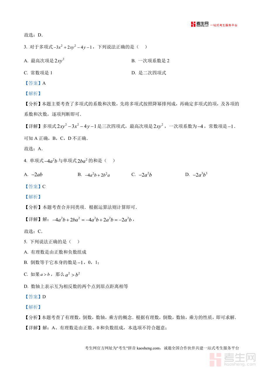 该资料核心用途在于帮助学生巩固有理数运算、整式化简、一元一次方程等核心知识点,掌握解题技巧;使用场景覆盖课后巩固、考前模拟、错题复盘;对学生而言,通过真题训练可熟悉巴蜀集团命题风格,提升应试能力;对教师或家长,可作为教学参考或辅导材料,精准定位知识薄弱点。其备考优势在于依托优质校命题资源,解析专业权威,能有效弥补知识漏洞。