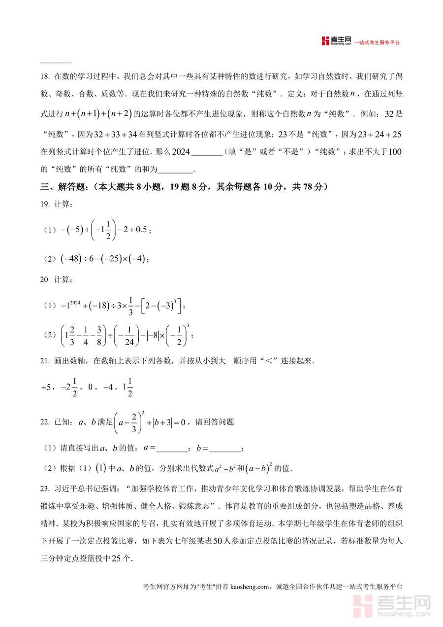 该资料适用于江津二中联盟十校及周边地区的七年级学生、数学学科教师,以及关注孩子数学学习进展的家长群体。作为区域联考的原卷资料,其必要性在于能直接对接实际考试要求,不可替代性体现在真实反映区域教学与命题特色,长期价值则是可作为后续学期复习及同类题型训练的重要参考资源,帮助使用者持续巩固数学基础与提升解题能力,为后续学习奠定坚实基础。