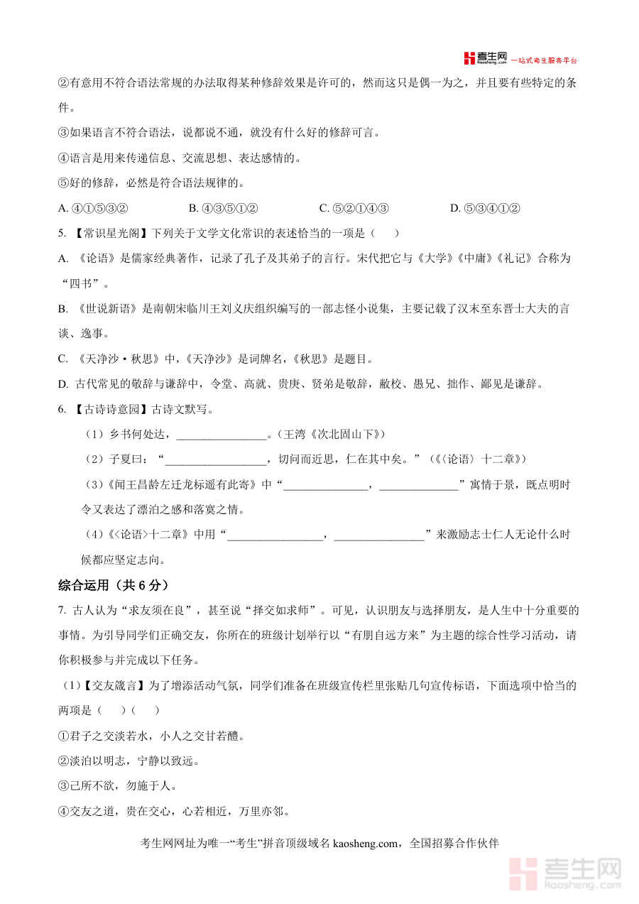 适用人群包括明德教育集团及周边七年级学生(同步复习)、初中语文教师(教学参考)、关注孩子学习家长(辅助辅导);作为区域优质资源产出试题,是期中复习不可或缺资料,精准对接考试要求;不可替代性体现在贴合集团教学进度与区域命题特色;长期价值为夯实语文基础,培养阅读理解与语言运用能力,奠定后续学习基础。