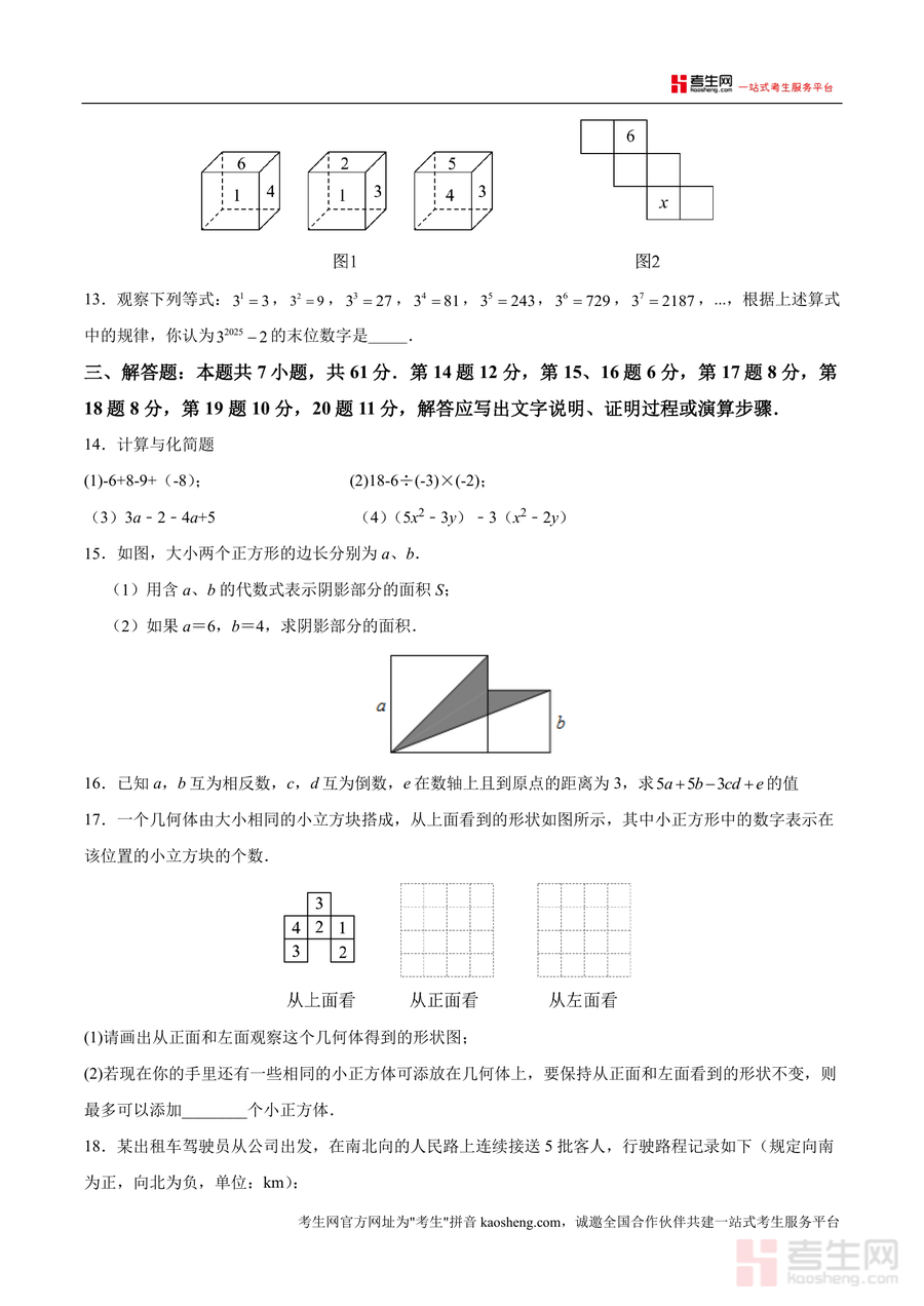 《广东省深圳市七年级数学上学期期中自编模拟卷(原卷版)(新教材北师大版).docx》是一份针对深圳地区七年级学生设计、贴合北师大2024版新教材要求的期中备考资料。该模拟卷严格遵循深圳本地期中命题规范,测试范围覆盖七年级数学1-3章核心内容,题型结构分为选择题(8小题24分)、填空题(5小题15分)与解答题(7小题61分)三大模块。其特色亮点在于题目设计兼顾基础巩固与能力拓展:基础题聚焦代数运算、几何图形认识等核心知识点;中档题侧重知识综合应用;难题则融入规律探索与实际问题解决,全面适配期中测试对学生知识掌握程度与应试能力的考察需求。
