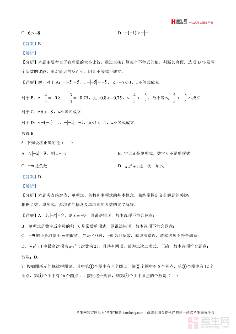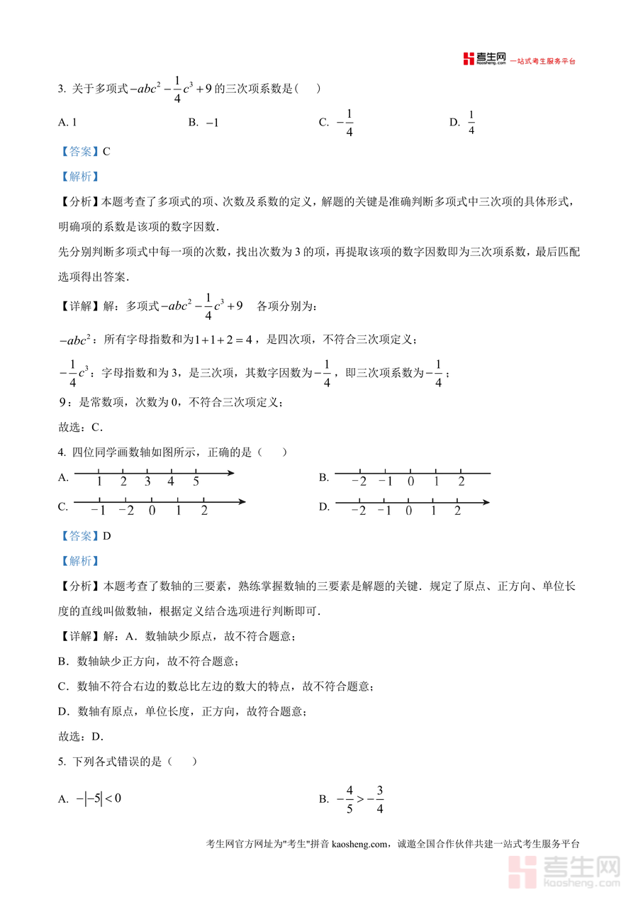 该资料核心用途在于辅助学生完成真题训练后的复盘总结,使用场景涵盖课堂同步复习、课后自主巩固及考前针对性冲刺;用户价值体现在通过解析掌握不同题型解题技巧,如有理数混合运算顺序应用、同类项定义下字母指数求解方法;备考优势在于贴合万州国本中学校考命题方向,能有效提升应试能力,帮助学生提前熟悉考试节奏与难度梯度。